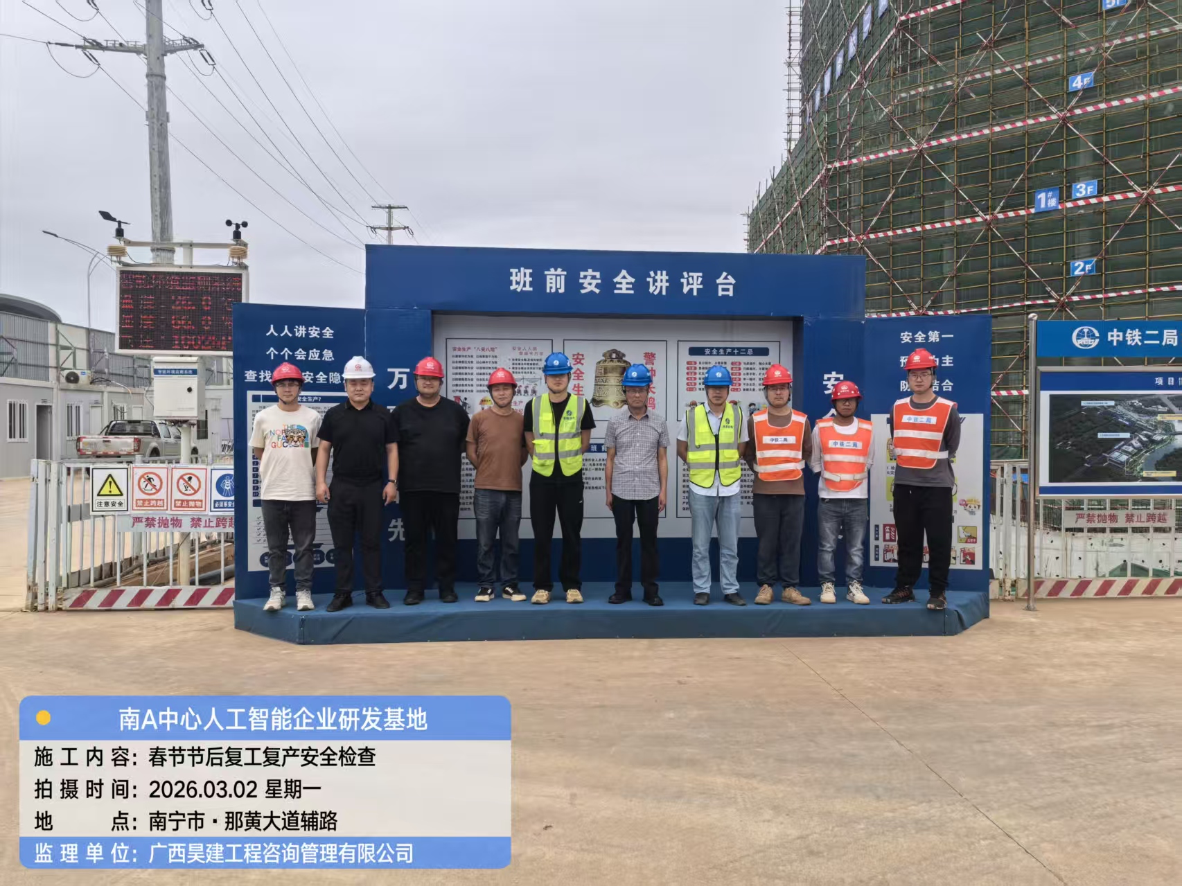 春潮涌动启新程,实干奋进正当时。春节假期圆满落幕,广西昊建工程咨询管理有限公司迅速收心归位、加压奋进,第一时间按下复工复产“加速键”。公司领导带队深入项目一线,已率先召开节后安全生产会议,对复工复产安全生产工作作专题部署,全面拉开节后复工检查序幕,以专业监理、严督实导护航各项目开好局、起好步。